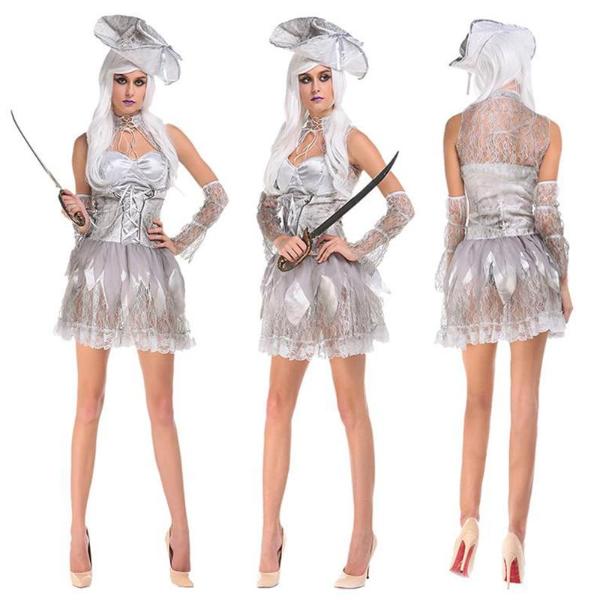 White Halloween New Women Zombie Fancy Costumes Cosplay Dress Pirate Treasure Outfit