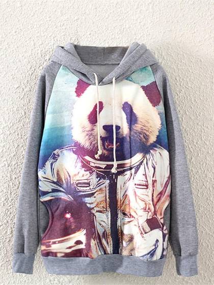 Caída de las mujeres de la nueva moda linda panda de impresión de manga larga de lana gruesa con capucha suéter capa jersey Tops