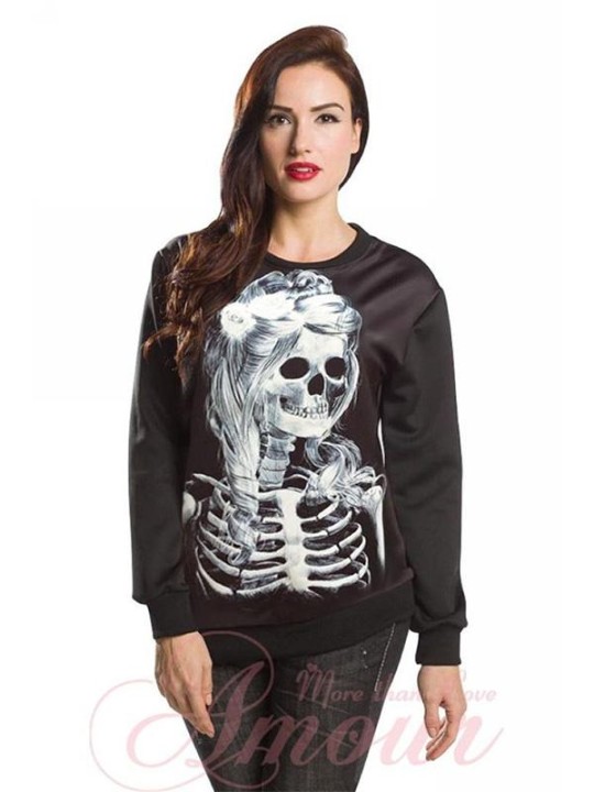 Naisten muoti goottilainen punk Darque Skull -digitaalinen villapaita pusero