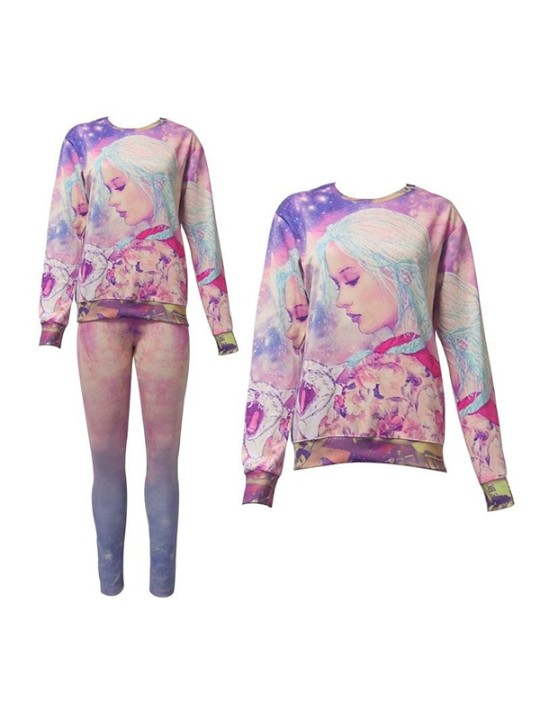 Tíska kvenna 2ST 3D prenta vetrarbraut fegurð sweatshirt sett / m buxur föt sett