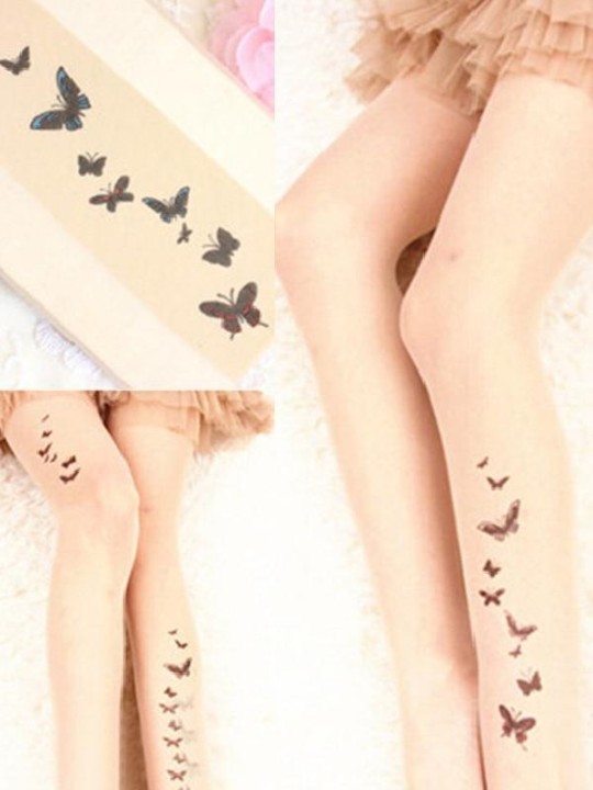 Sexy Slim Flocking Vintage Retro nakinn fiðrildaprent sokkabuxur