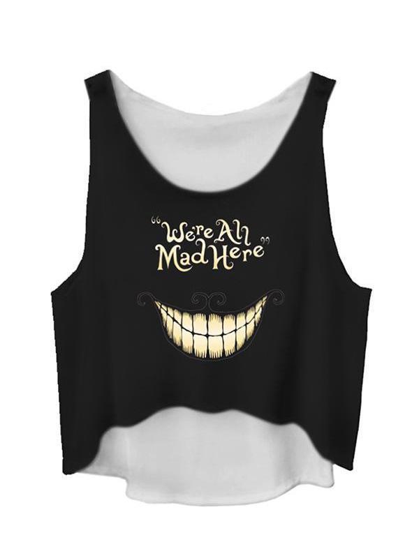 Konur brosa andlit Ermalausar lausar skyrtur ermabolir Coco stafrænir prentaðir vestisskurðarbolir