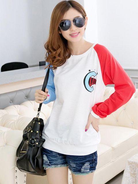 Fashion Autumn Women Stitching Color Long Sleeves T-shirt Trendy Casual Preppy Style Loose T-shirt
