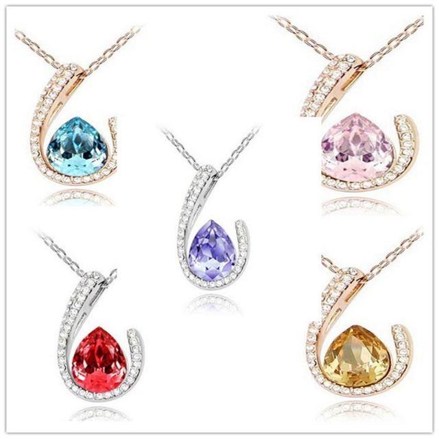 Joyería de moda las mujeres lágrima Crystal Rhinestone colgante collar cadena regalo