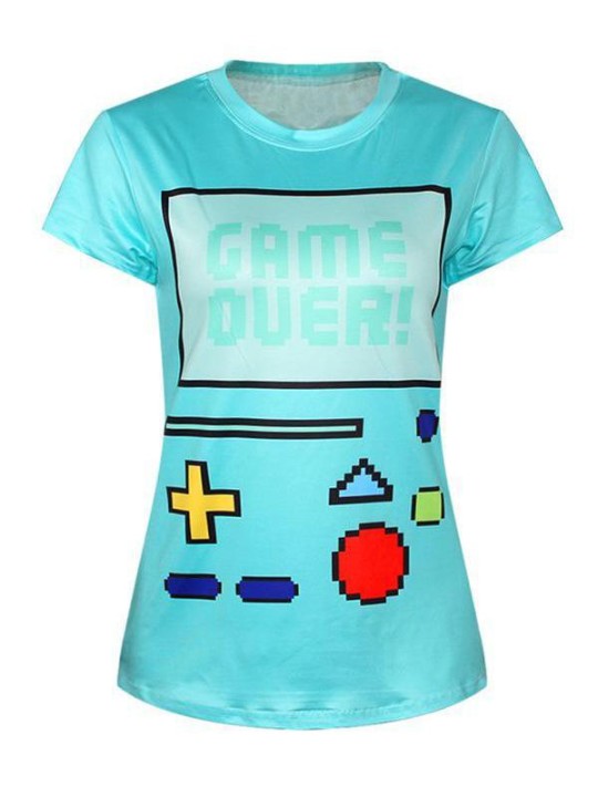 Women's 3D BMO2 Digital Printing Short Sleeve Crewneck T-Shirt Shirts Tee (Light Green)