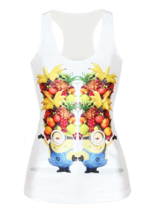 Women's Summer Fashion 3D Digital Pure White Designedshirt Beautiful Cartoon Minions Print Sleeveless Slim Fashion Vest Tanks T-shirt