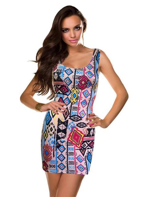 Moda feminina estilo de impressão digital rabisco sem mangas Low-Cut Slim Fit Bodycon Tank Dress