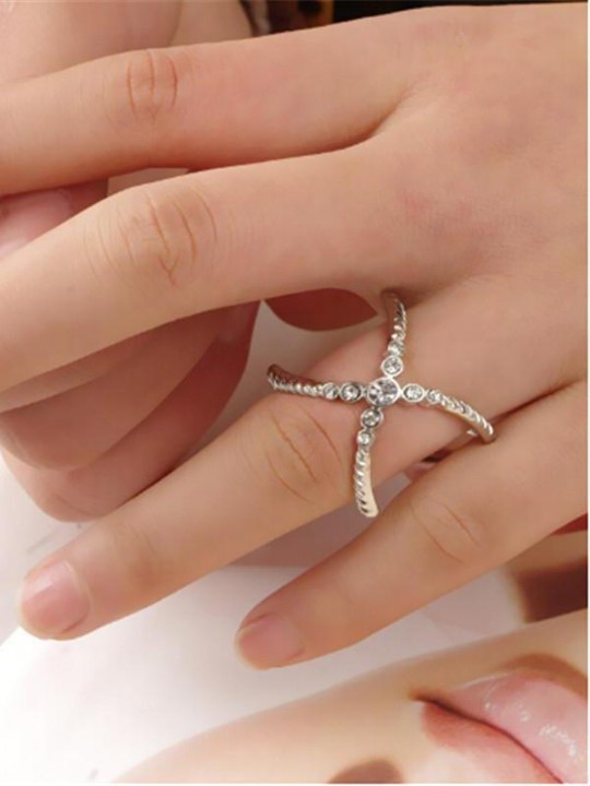 Moda Feminina Rhinestone Crystone Twisted "X" Longo Anel
