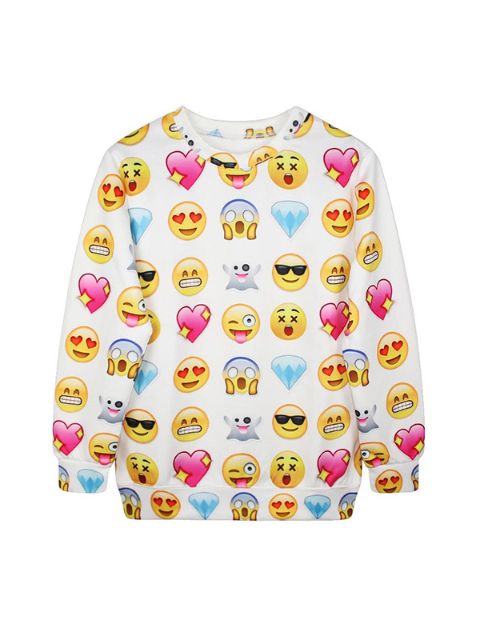 Moda Feminina Emoji Imprimir Padrão Moletom Solto Pullover Hoodies & Hoodies