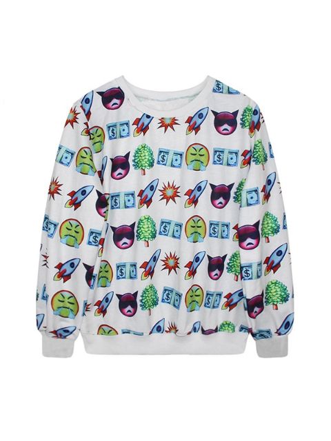 Moda Feminina Emoji Imprimir Padrão Moletom Solto Pullover Hoodies & Hoodies